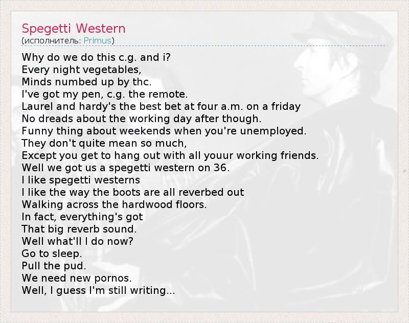 А как ты думаешь, о чем песня "Spegetti Western" ?