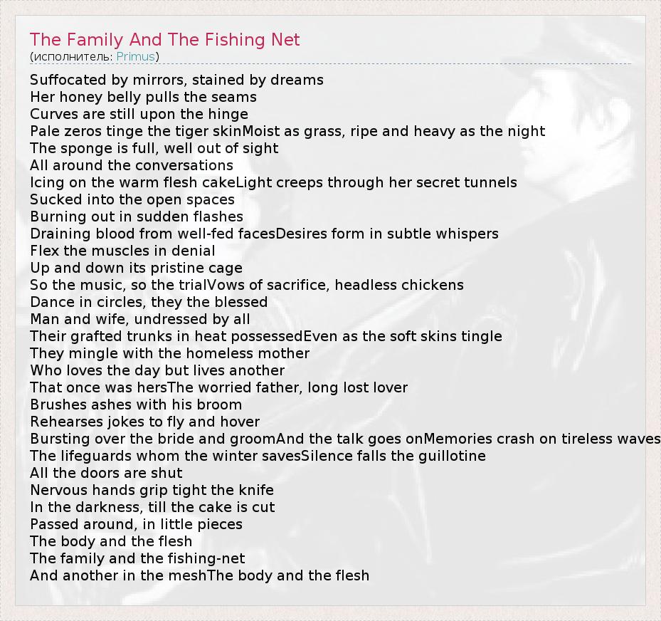 А как ты думаешь, о чем песня "The Family And The Fishing Net" ?