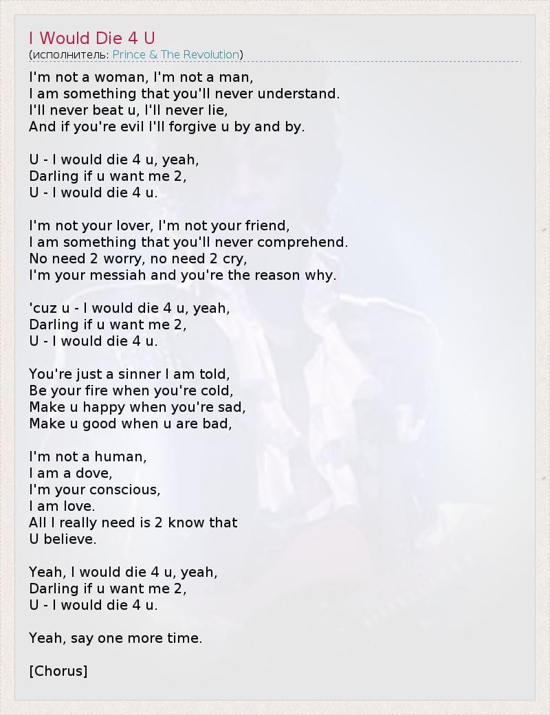 А как ты думаешь, о чем песня "I Would Die 4 U" ?