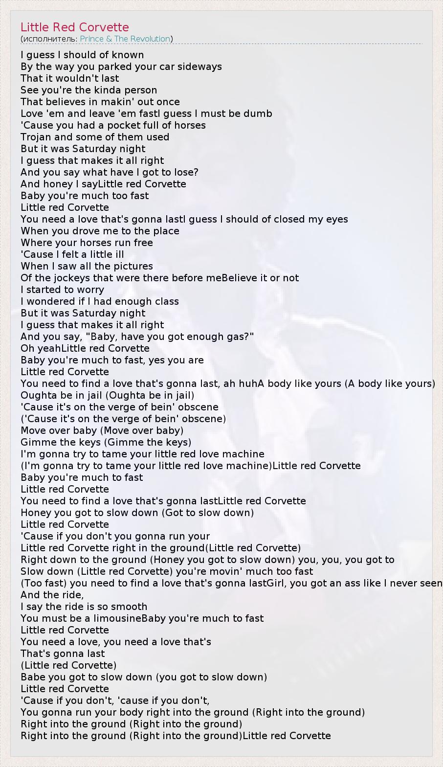 А как ты думаешь, о чем песня "Little Red Corvette" ?