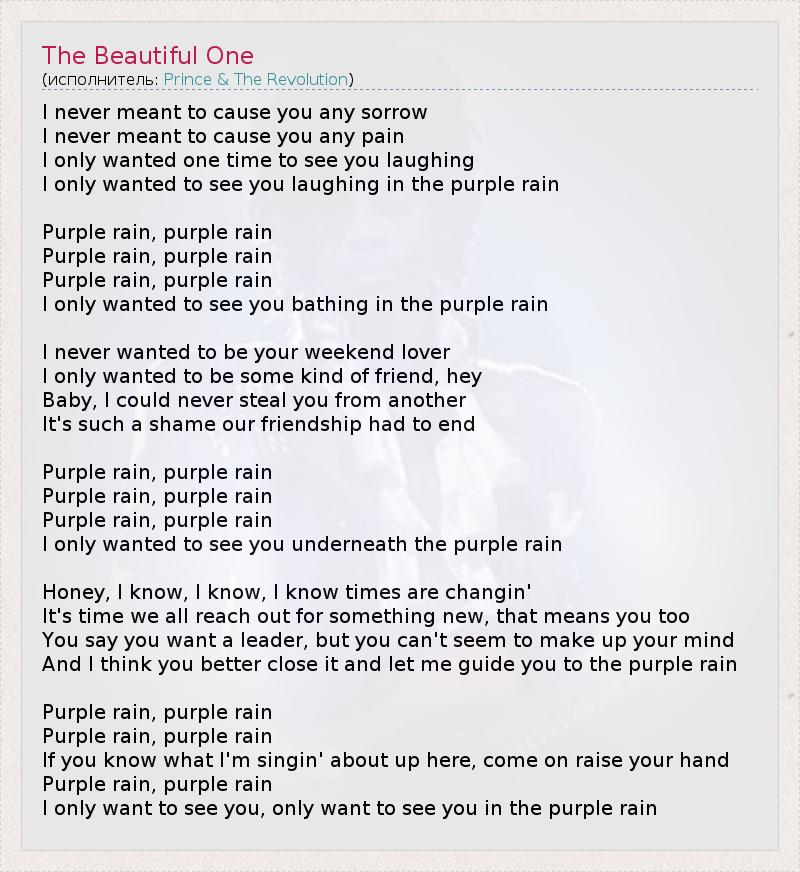 Я лишь хотел видеть, как ты смеешься под пурпурным дождем.