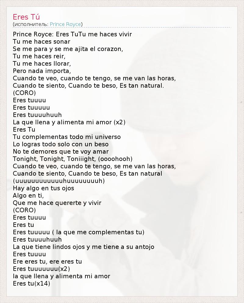Это интересно:Geoffrey Royce Rojas (born May 11, 1989), known by his stage name Prince Royce, is an American singer-songwriter and record producer from The Bronx. At an early age, Royce took an interest in music and into his teenage years, began experimenting with music and writing poetry. By age nineteen, Royce met Andrés Hidalgo, who became his manager. Hidalgo later introduced Royce to Sergio George, who immediately signed him to his label after hearing three of his demos.In March 2010, he released his eponymous debut studio album, which generated two commercially successful singles, "Stand by Me" and "Corazón Sin Cara". Both songs reached number-one on the Billboard Tropical Songs... продолжение