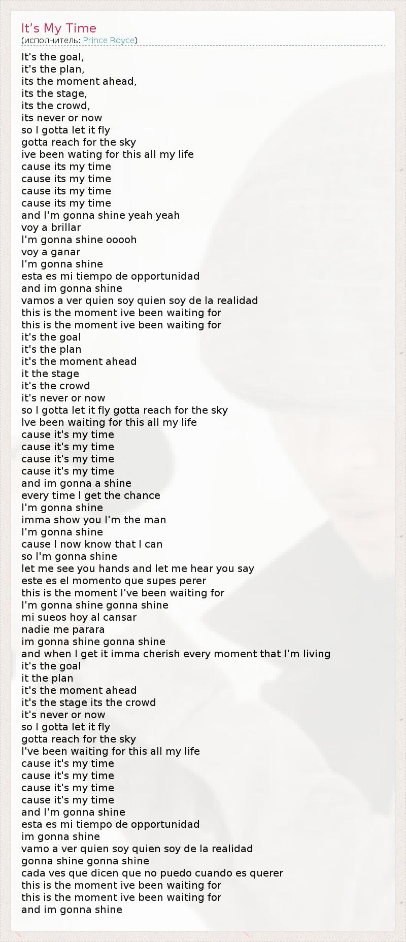 А как ты думаешь, о чем песня "It’s My Time" ?