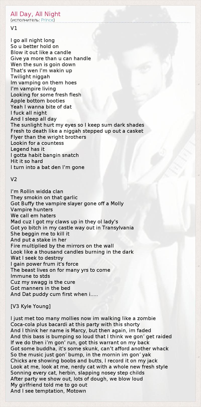 А как ты думаешь, о чем песня "All Day, All Night" ?