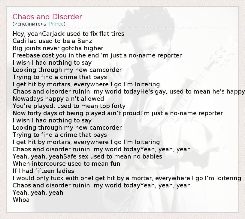 А как ты думаешь, о чем песня "Chaos and Disorder" ?
