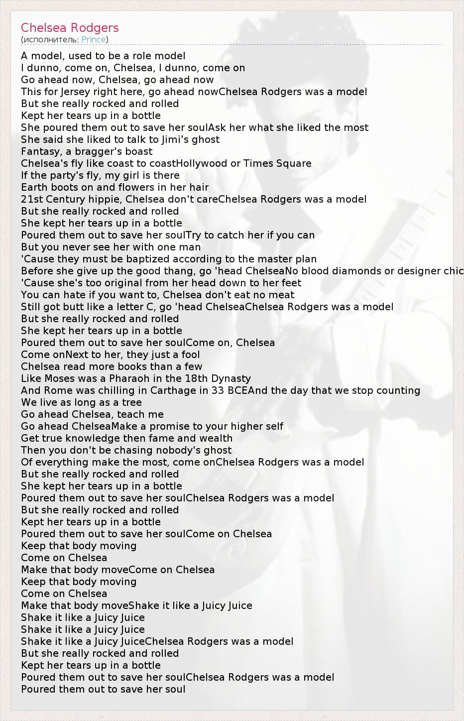 А как ты думаешь, о чем песня "Chelsea Rodgers" ?