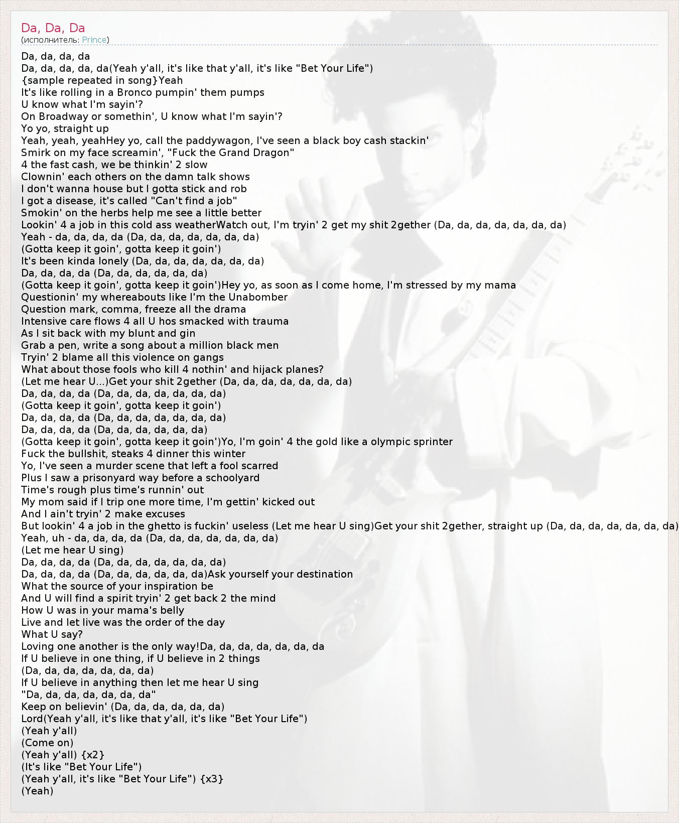 "Da, da, da, da, da, da, da"