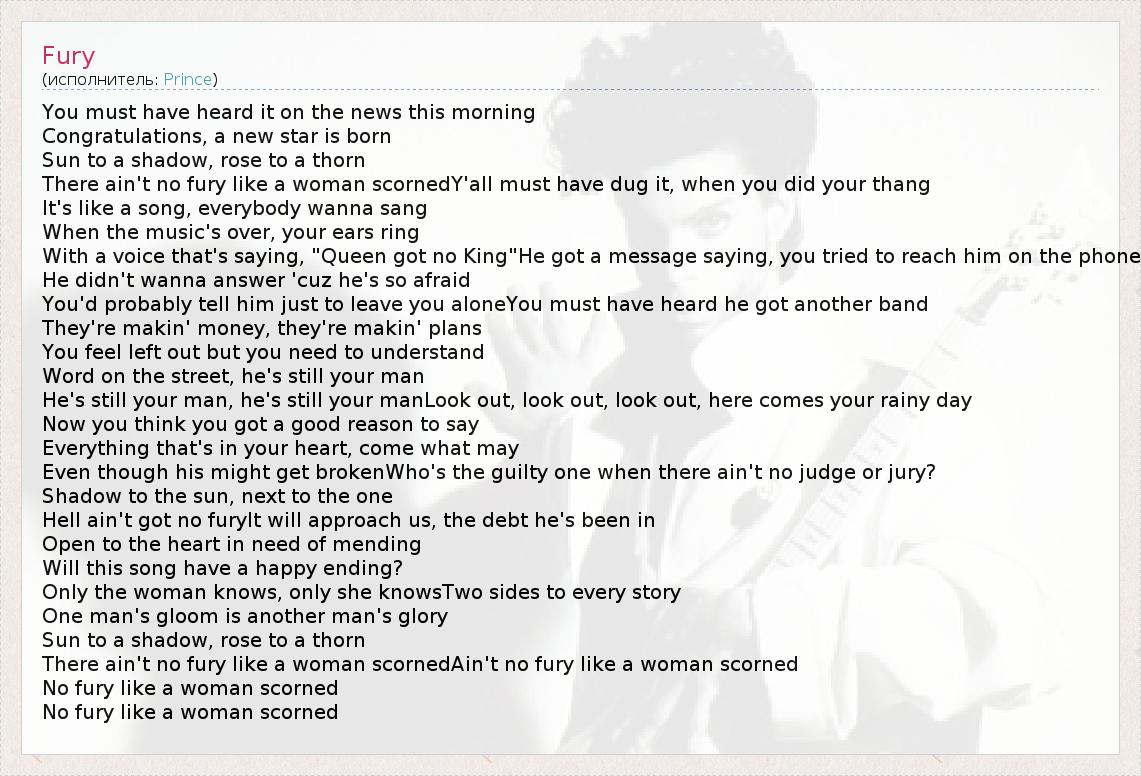 There ain't no fury like a woman scornedAin't no fury like a woman scorned