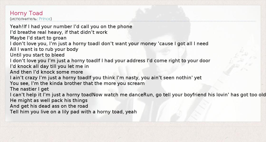 А как ты думаешь, о чем песня "Horny Toad" ?