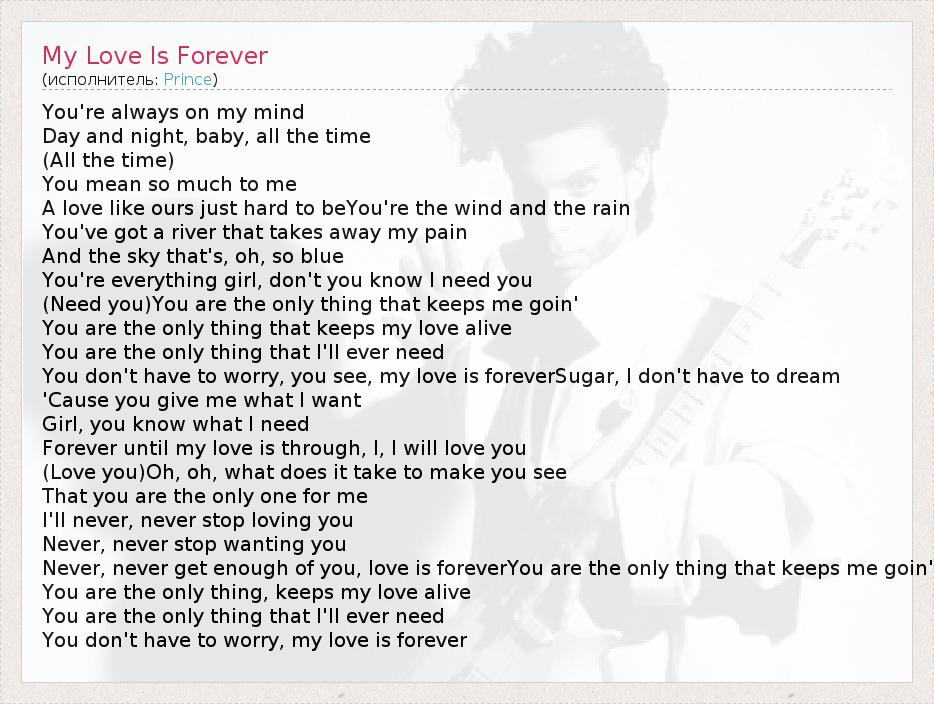 А как ты думаешь, о чем песня "My Love Is Forever" ?