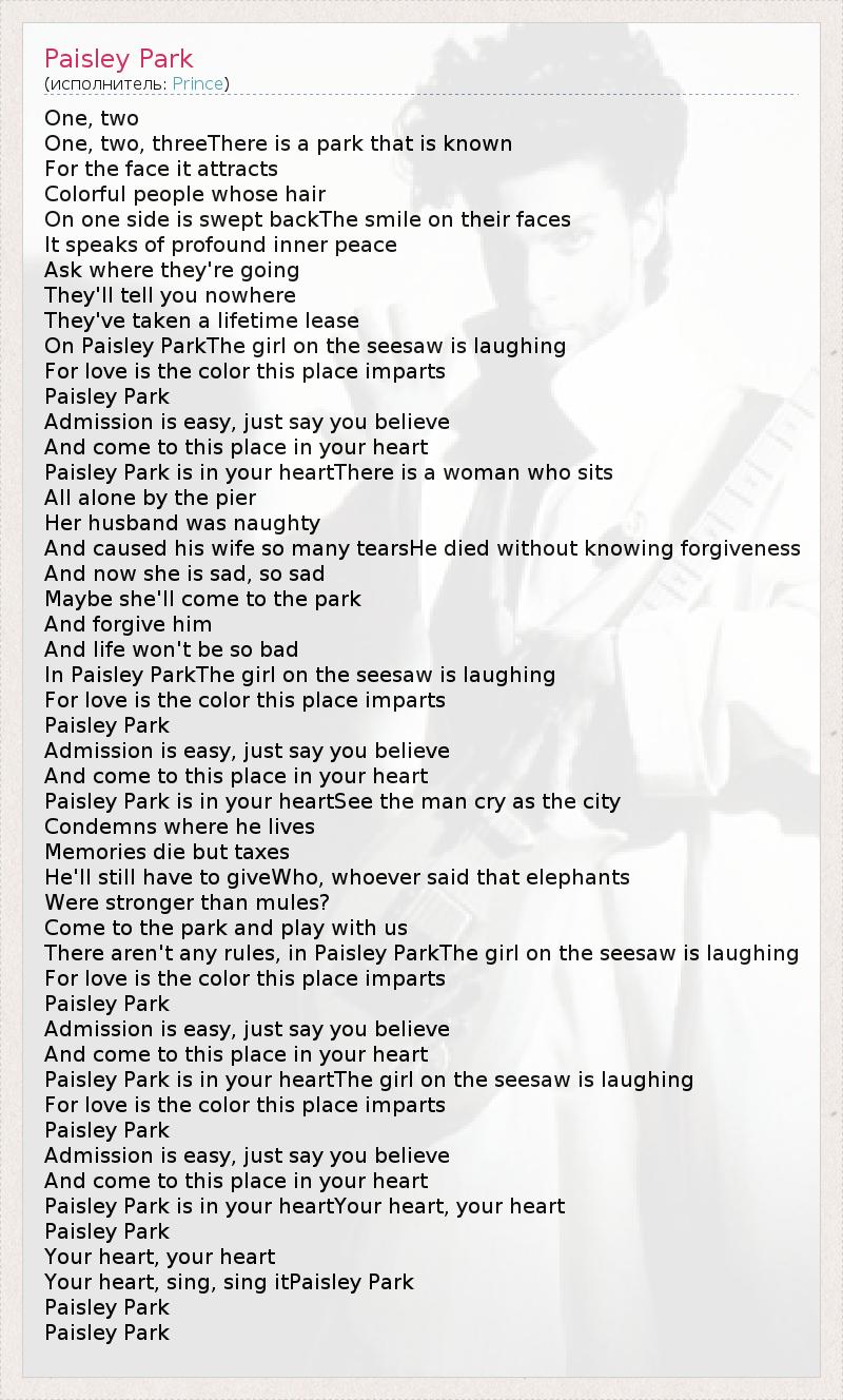 А как ты думаешь, о чем песня "Paisley Park" ?