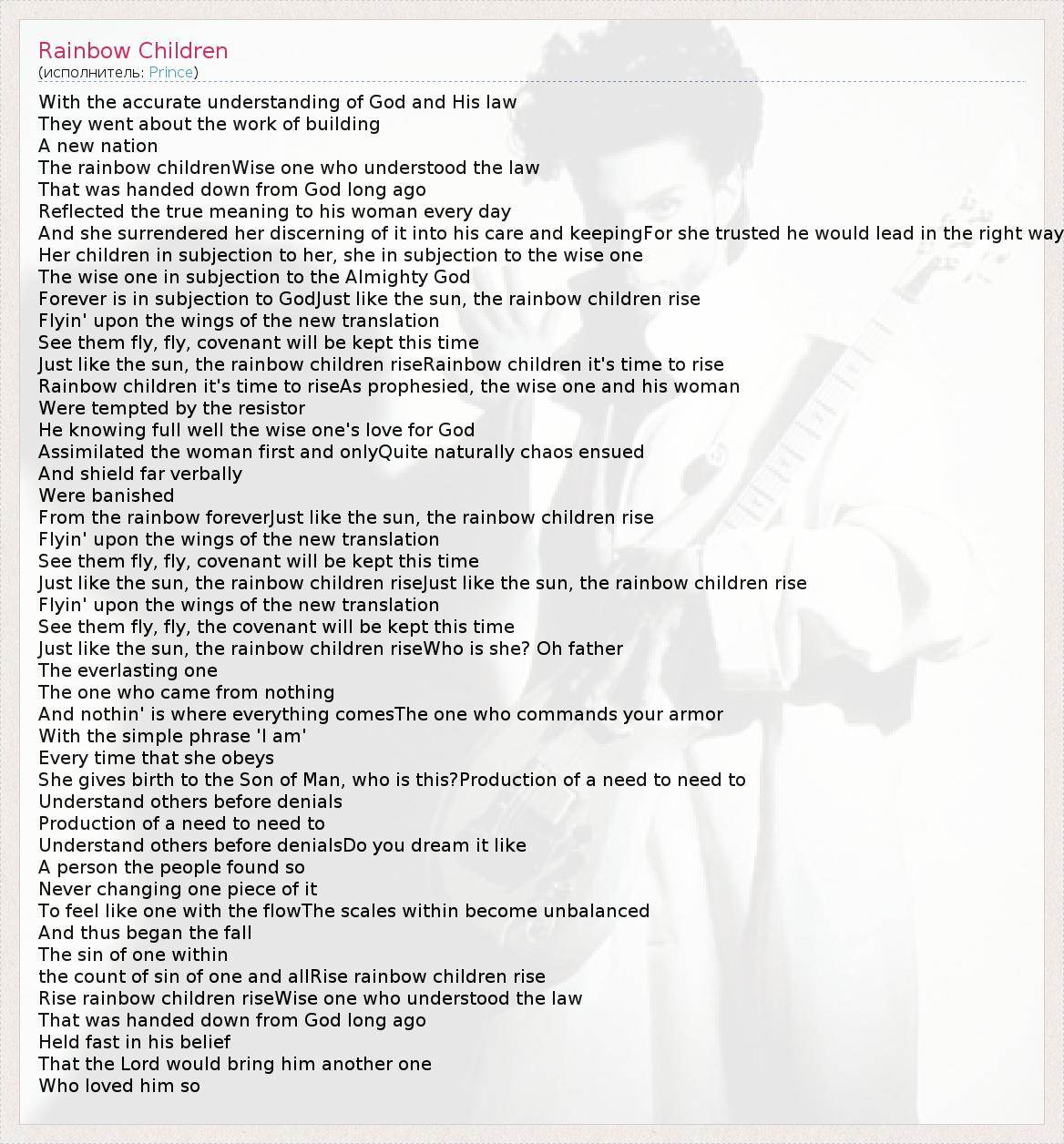 А как ты думаешь, о чем песня "Rainbow Children" ?