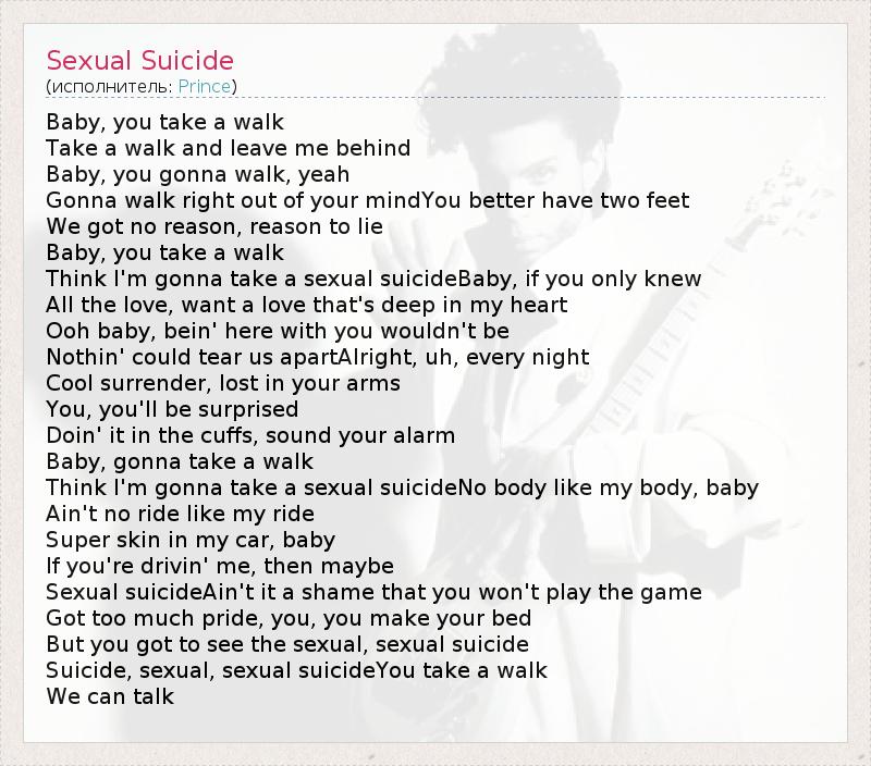 А как ты думаешь, о чем песня "Sexual Suicide" ?