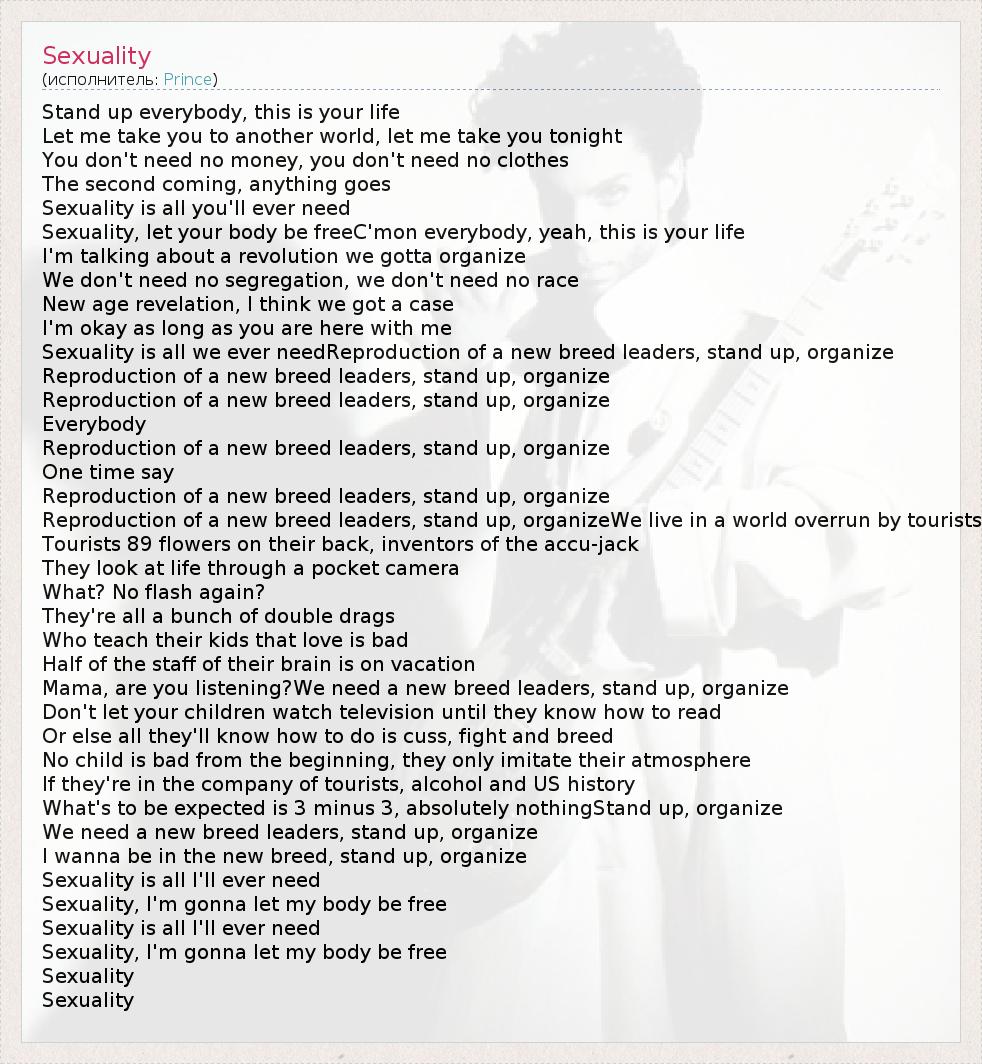 А как ты думаешь, о чем песня "Sexuality" ?