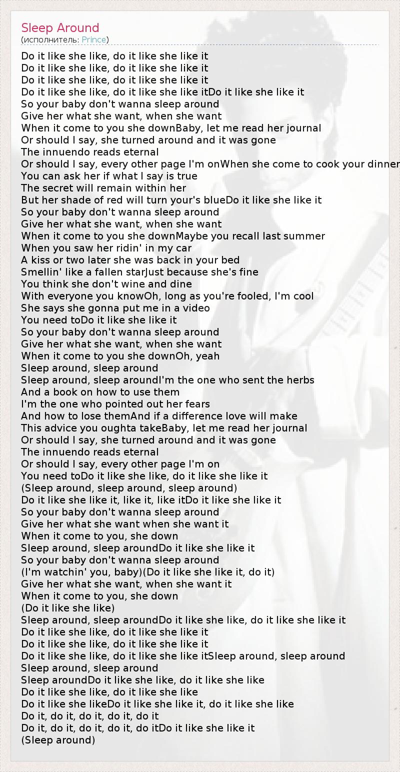 Sleep around, sleep aroundDo it like she like, do it like she like it