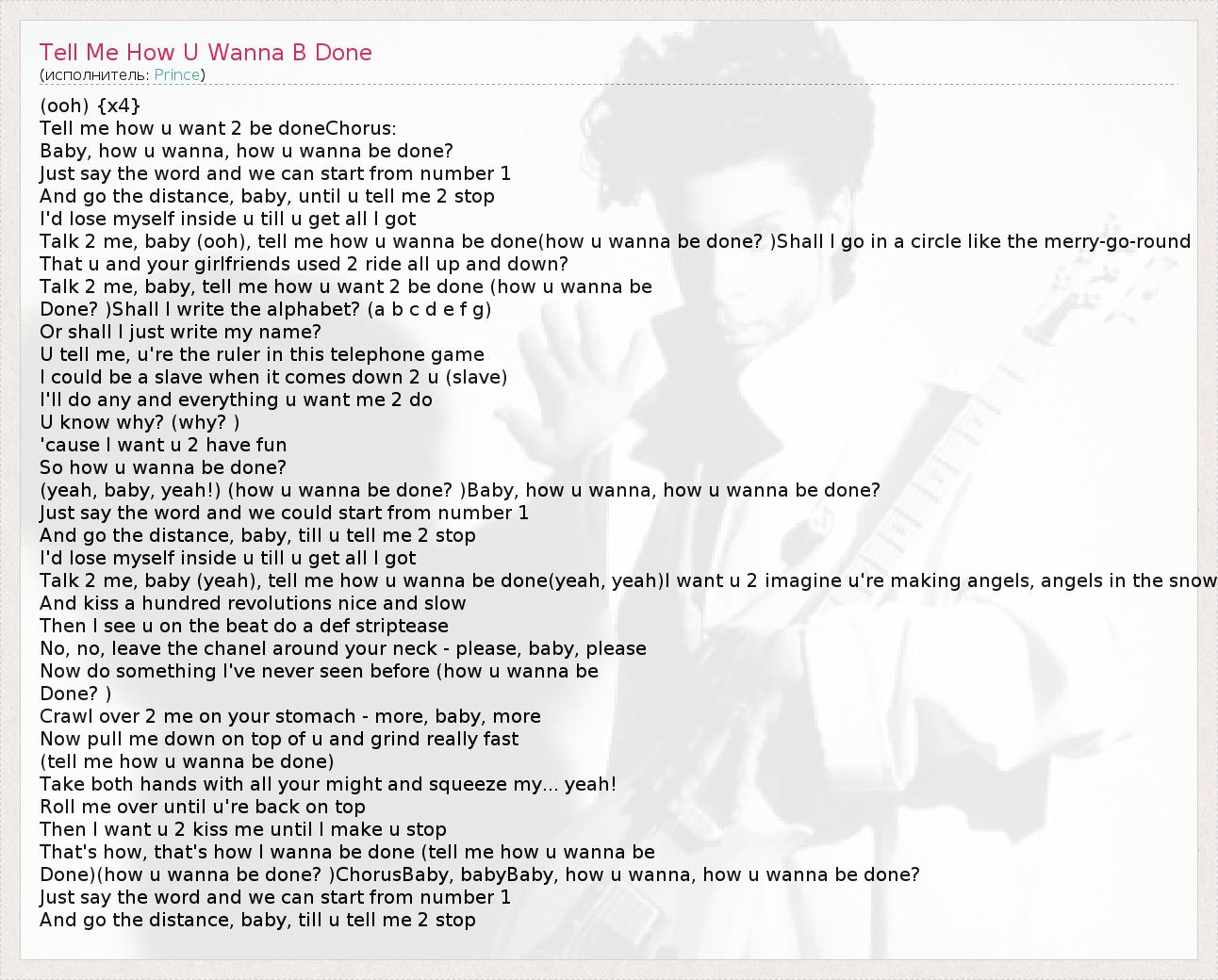 ГлавнаяИсполнителиPrinceTell Me How U Wanna B Done