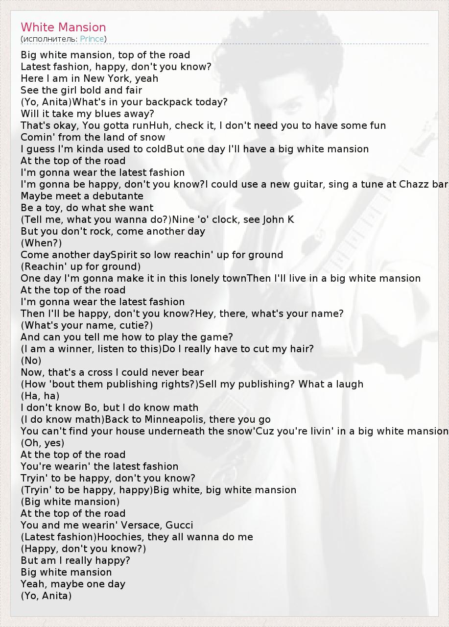 One day I'm gonna make it in this lonely townThen I'll live in a big white mansion
