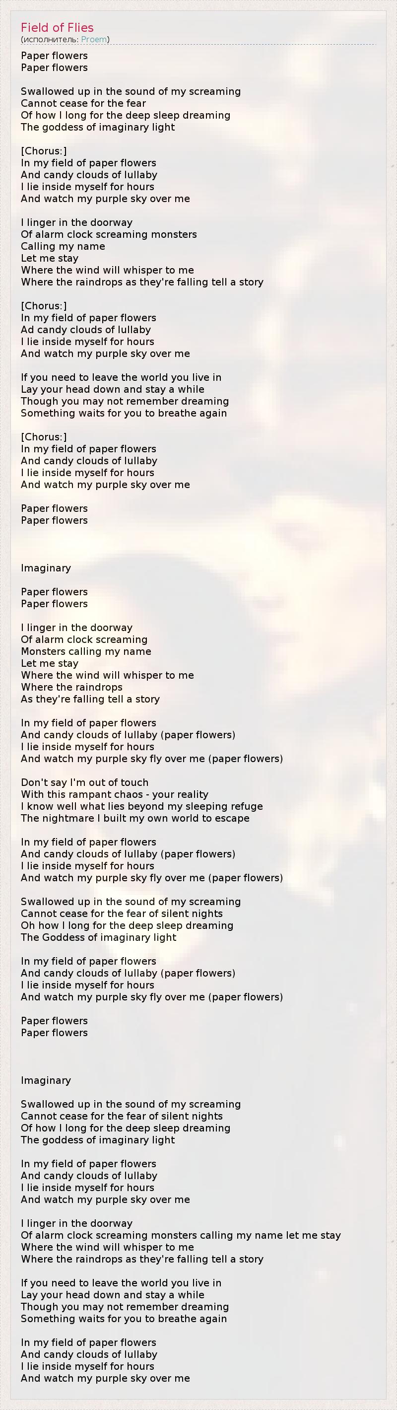 And candy clouds of lullaby (paper flowers)
