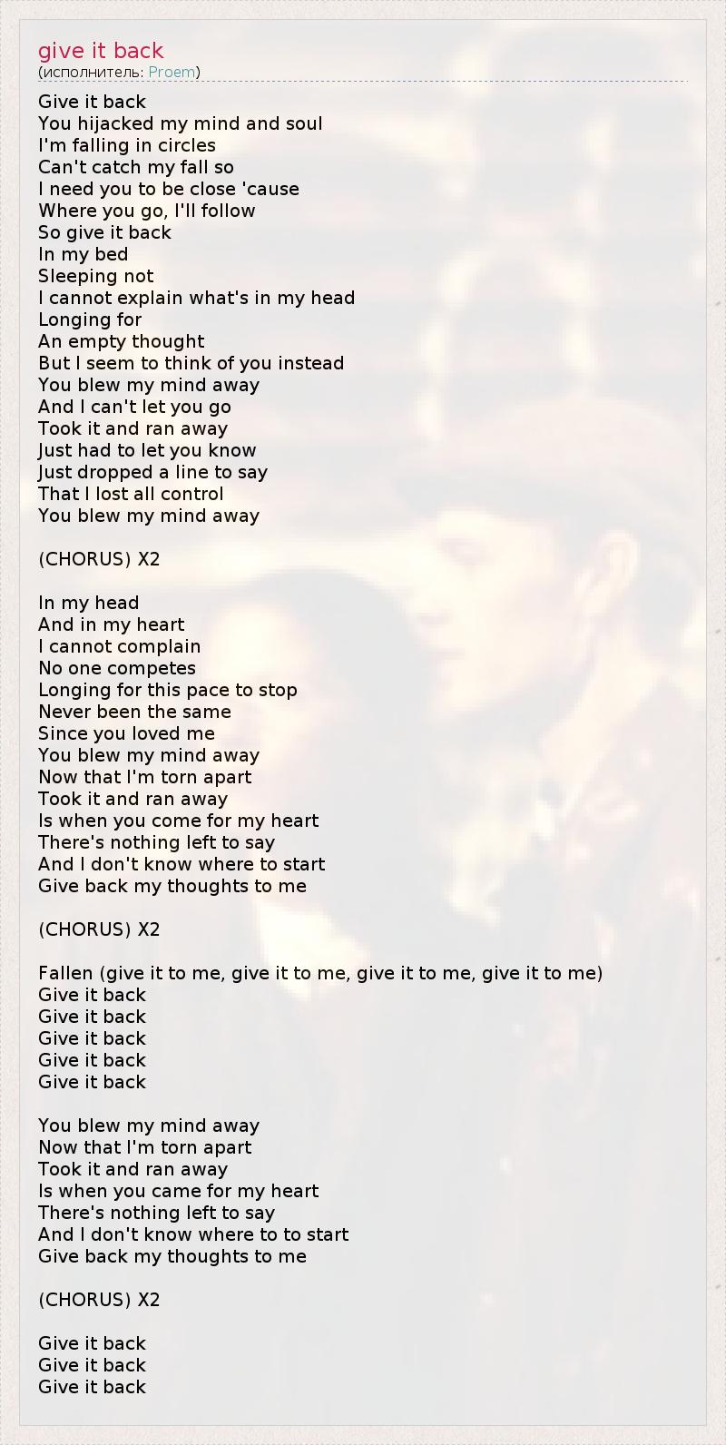 А как ты думаешь, о чем песня "give it back" ?