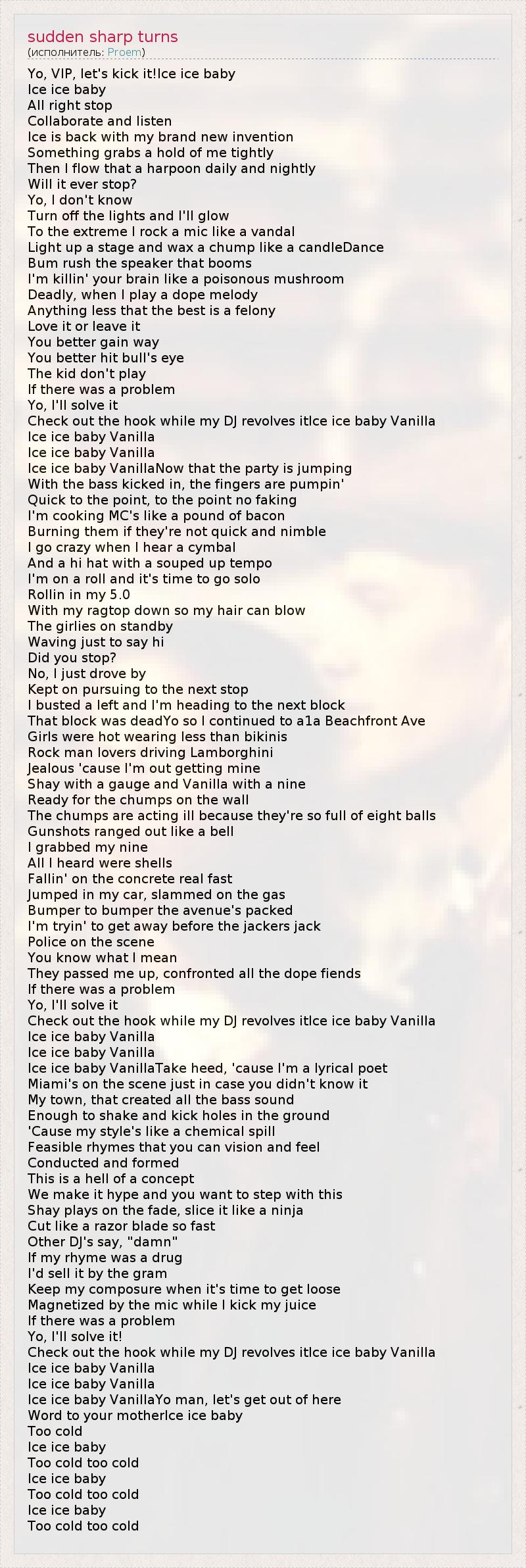 Ice ice baby VanillaTake heed, 'cause I'm a lyrical poet