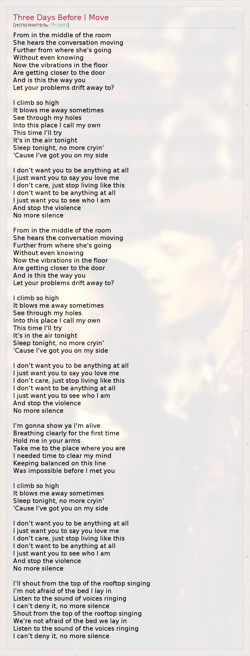 ГлавнаяИсполнителиProemThree Days Before I Move