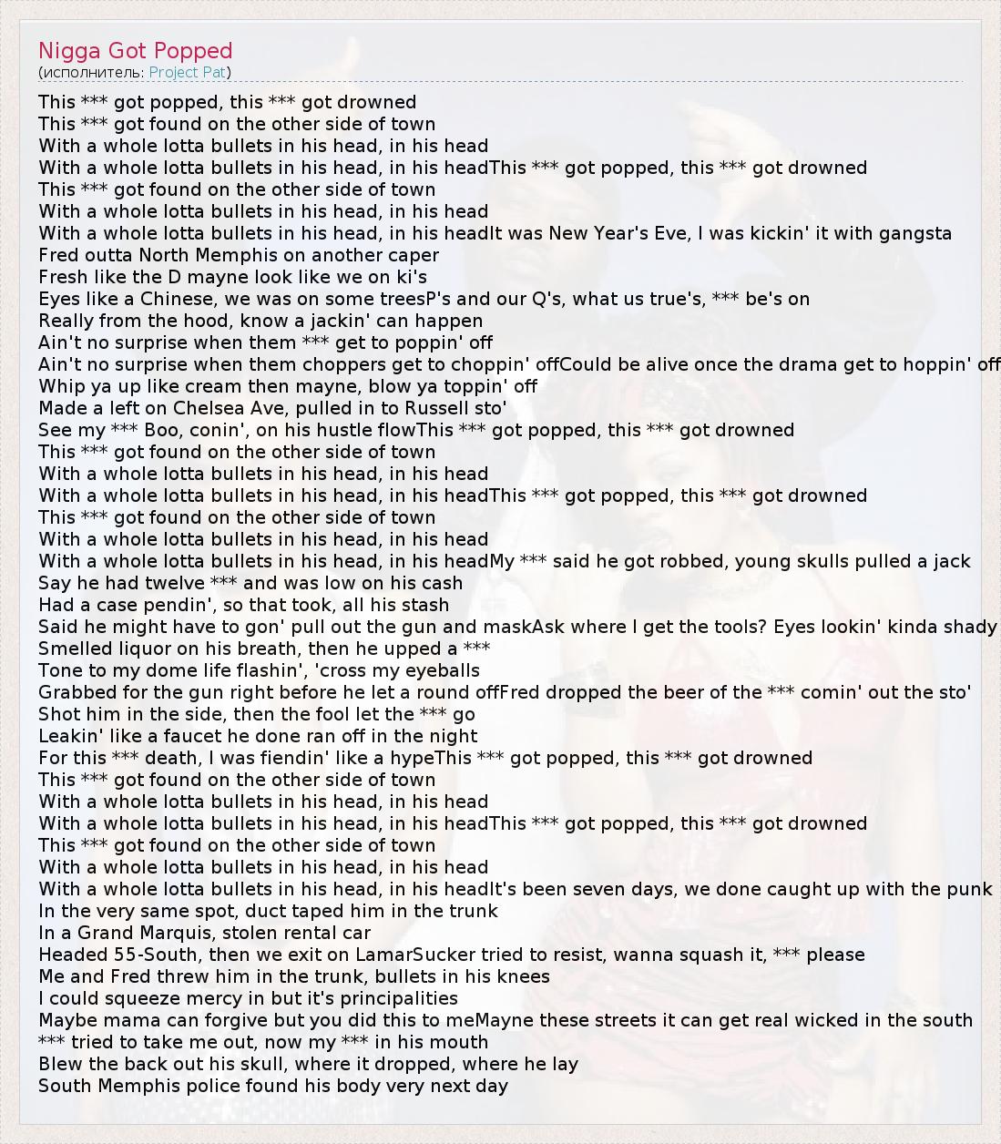 А как ты думаешь, о чем песня "Nigga Got Popped" ?