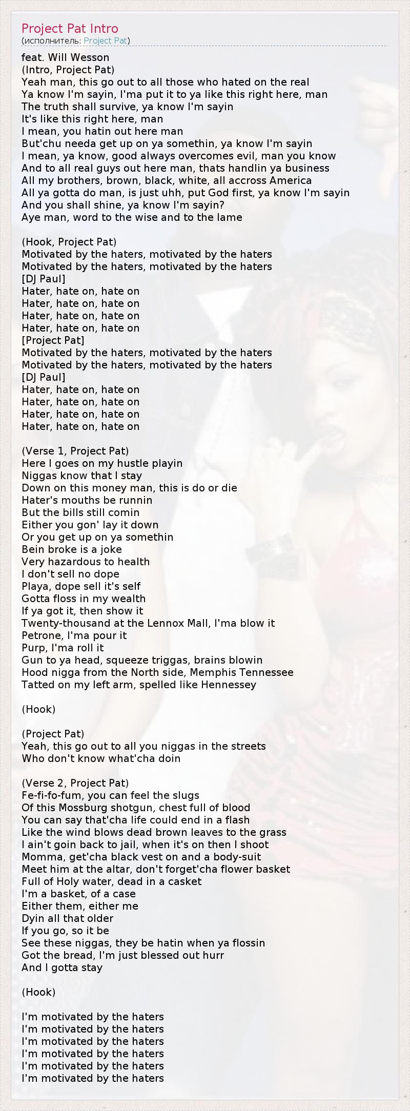 А как ты думаешь, о чем песня "Project Pat Intro" ?