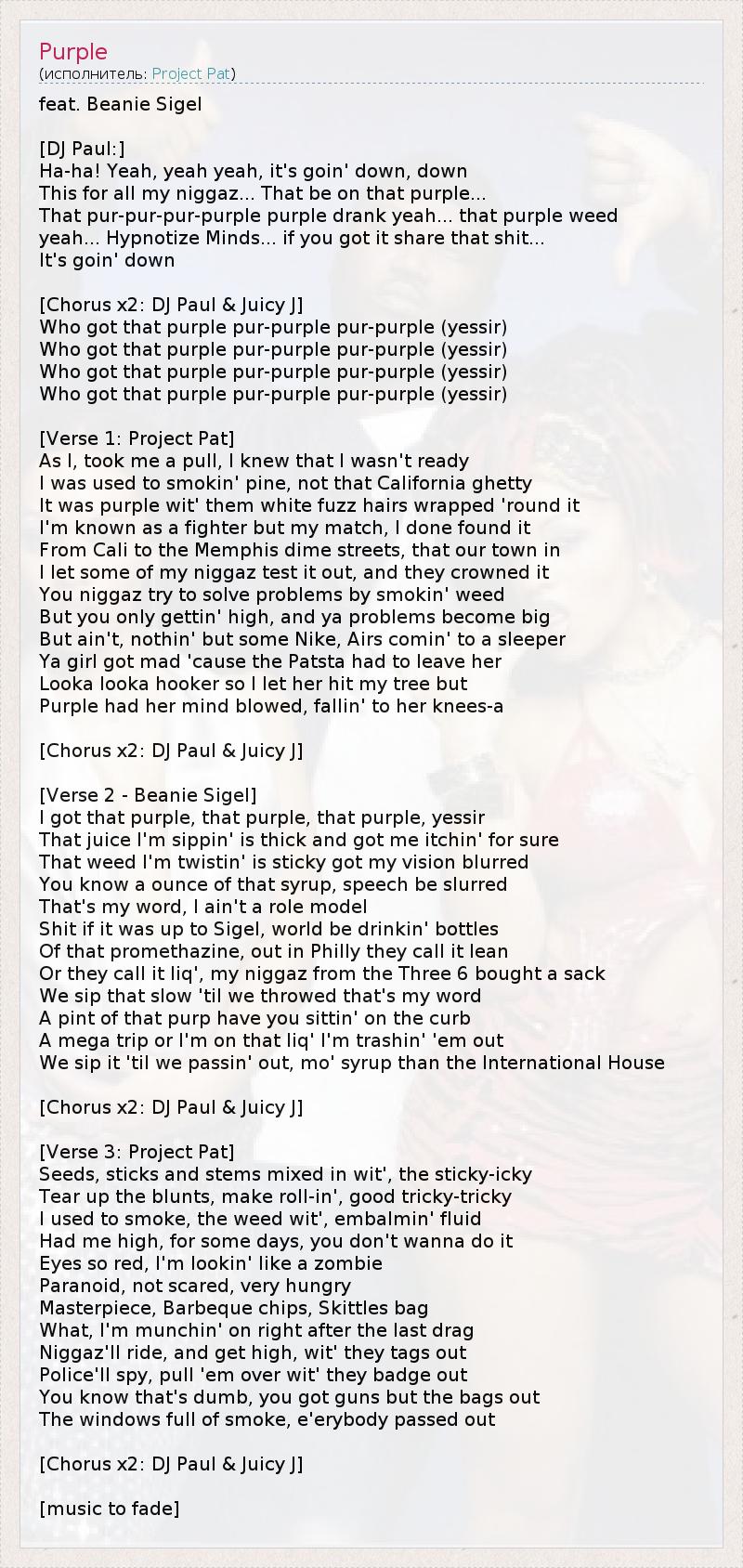 This for all my niggaz... That be on that purple...