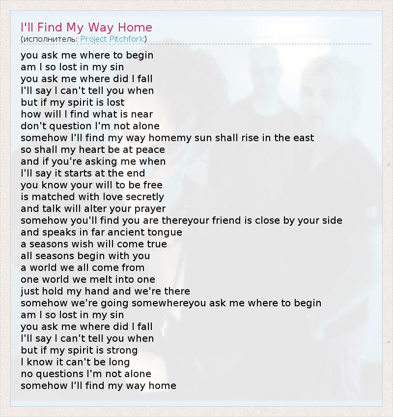 А как ты думаешь, о чем песня "I'll Find My Way Home" ?