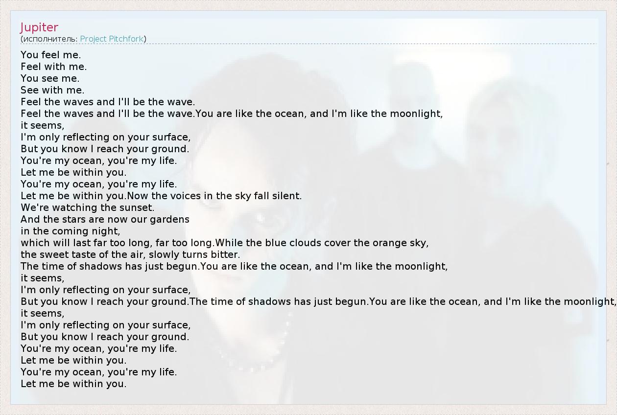 Feel the waves and I'll be the wave.You are like the ocean, and I'm like the moonlight,