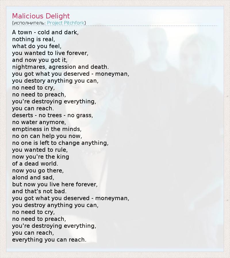 А как ты думаешь, о чем песня "Malicious Delight" ?