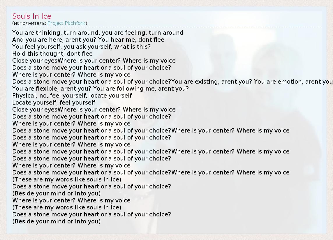А как ты думаешь, о чем песня "Souls In Ice" ?