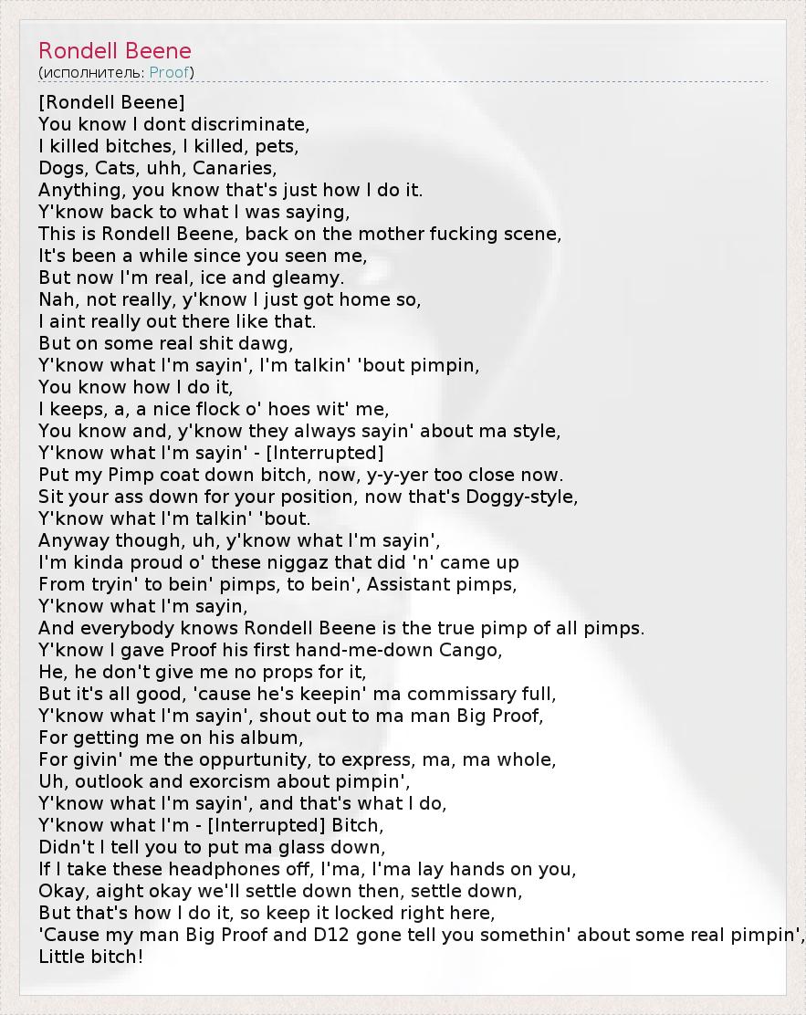 And everybody knows Rondell Beene is the true pimp of all pimps.