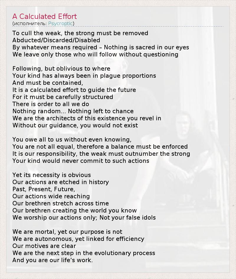 А как ты думаешь, о чем песня "A Calculated Effort" ?