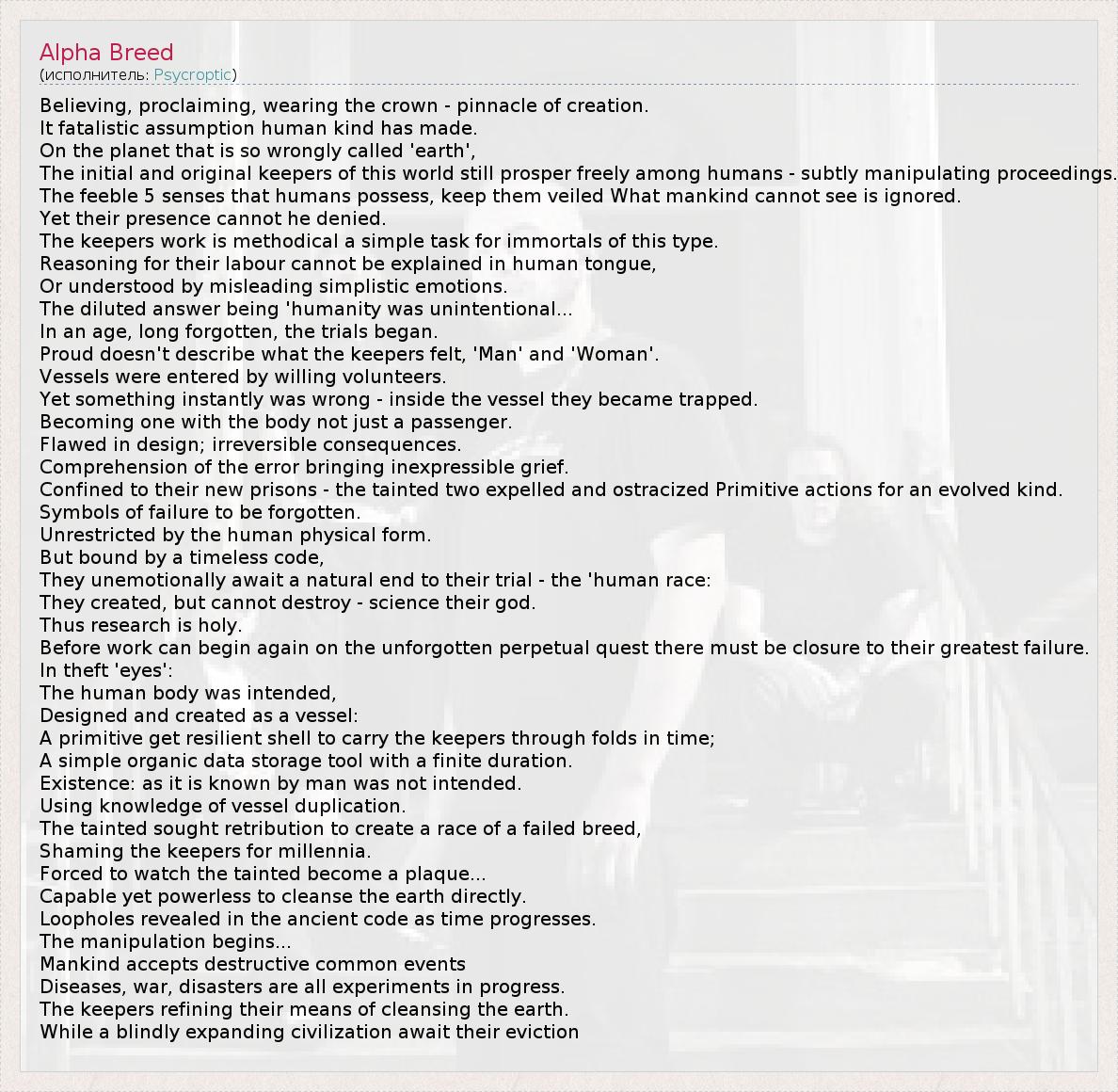 А как ты думаешь, о чем песня "Alpha Breed" ?