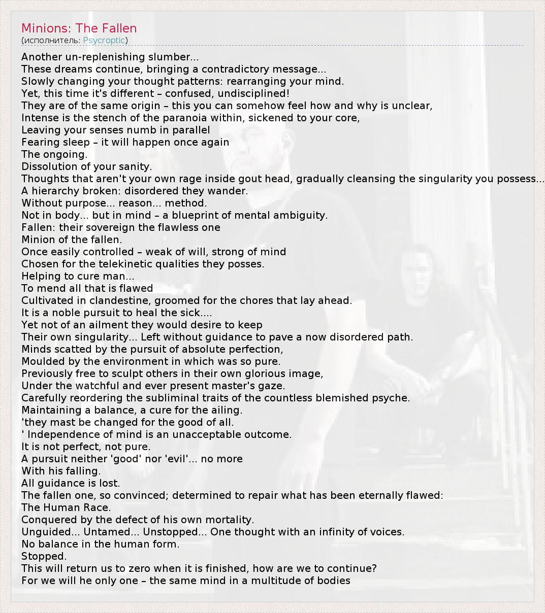 А как ты думаешь, о чем песня "Minions: The Fallen" ?