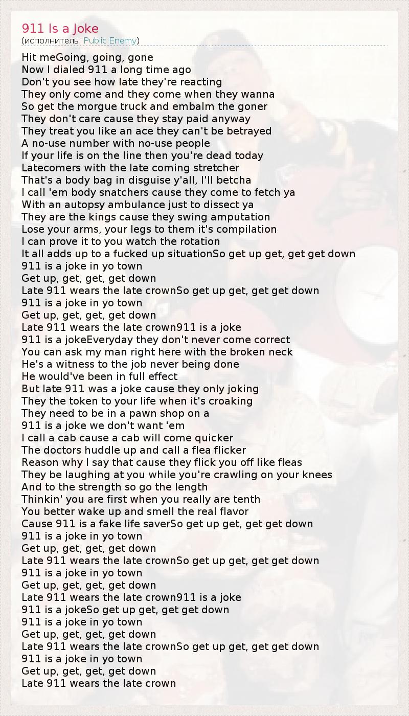 А как ты думаешь, о чем песня "911 Is a Joke" ?