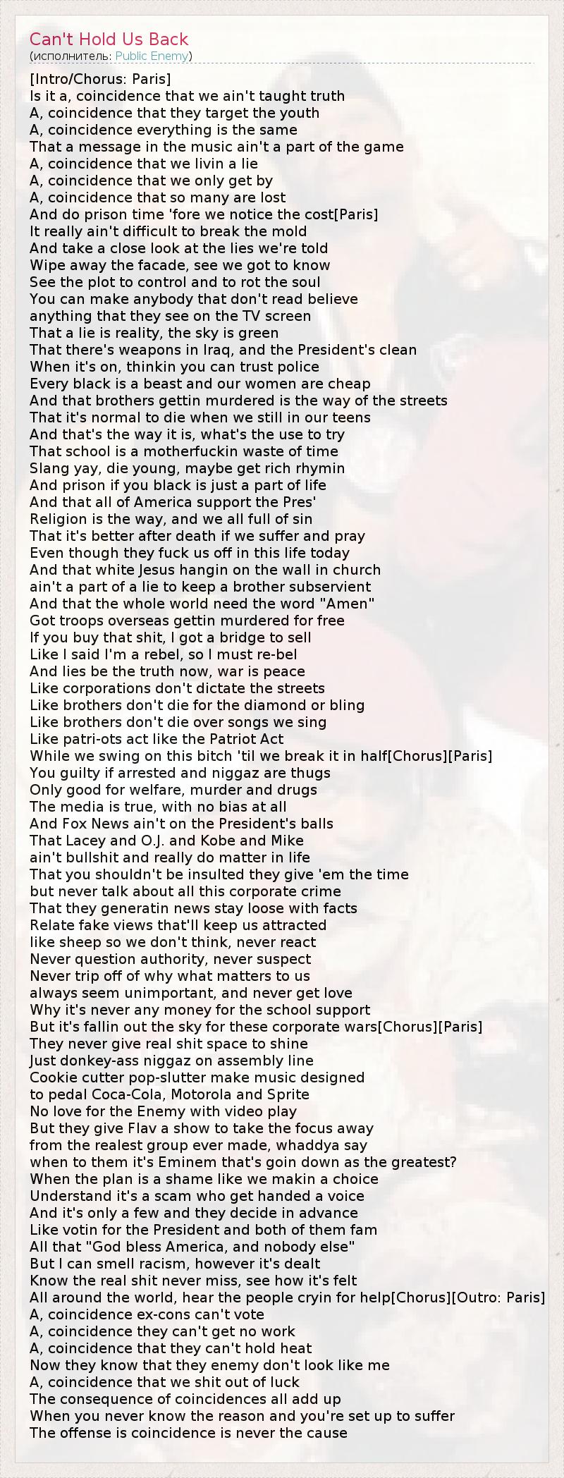 А как ты думаешь, о чем песня "Can't Hold Us Back" ?