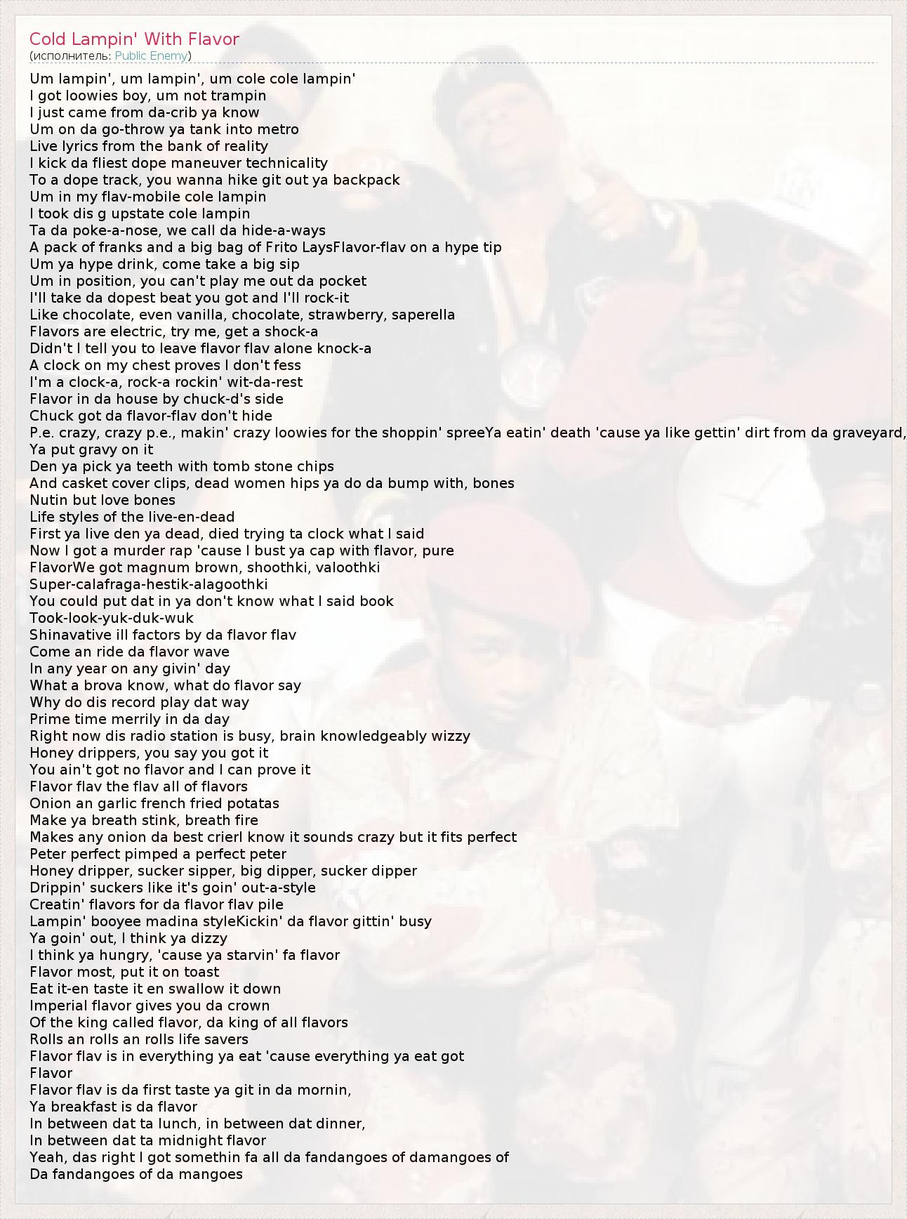 А как ты думаешь, о чем песня "Cold Lampin' With Flavor" ?