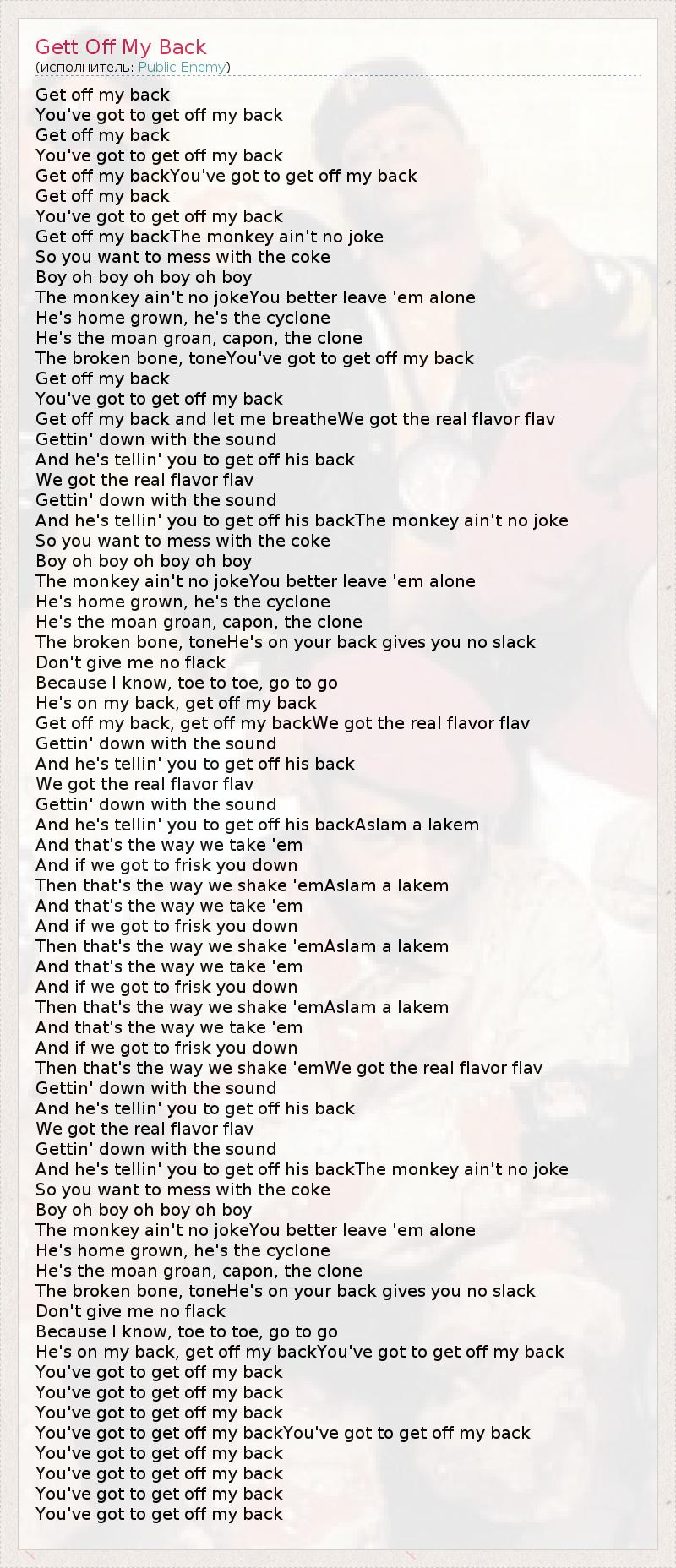 А как ты думаешь, о чем песня "Gett Off My Back" ?