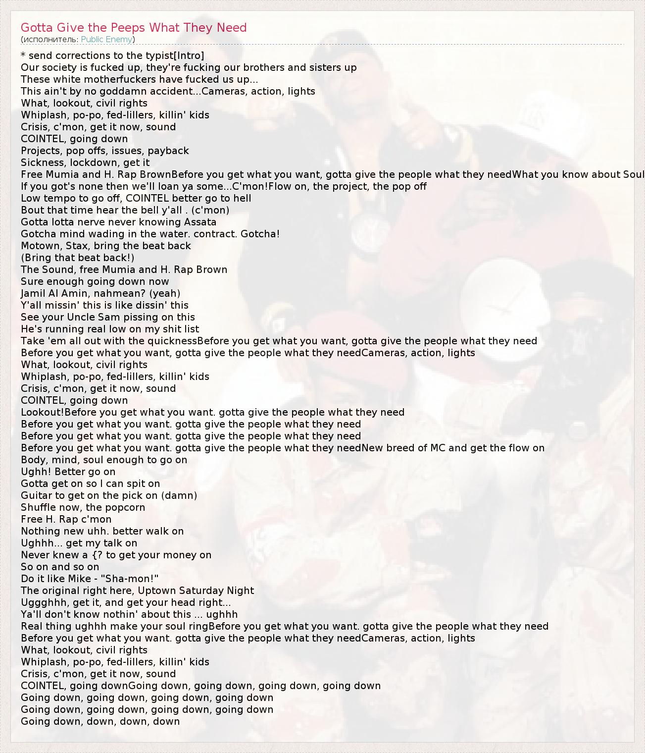 А как ты думаешь, о чем песня "Gotta Give the Peeps What They Need" ?