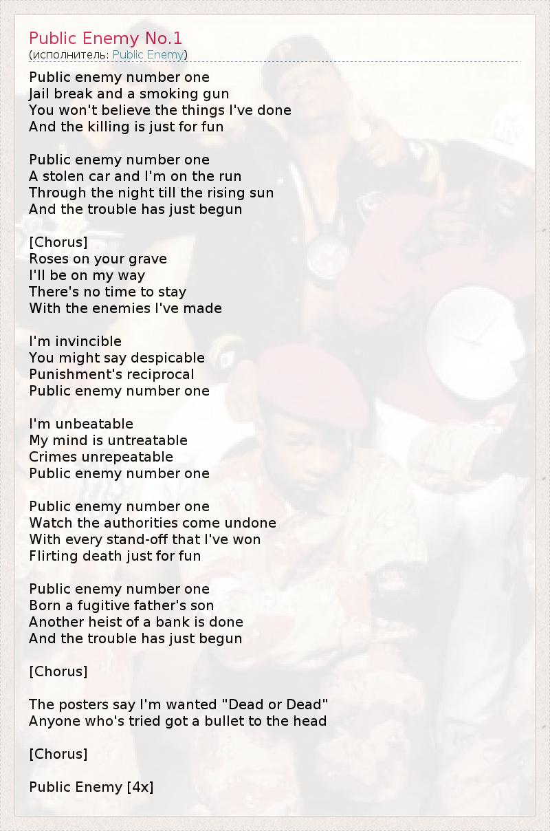 А как ты думаешь, о чем песня "Public Enemy No.1" ?