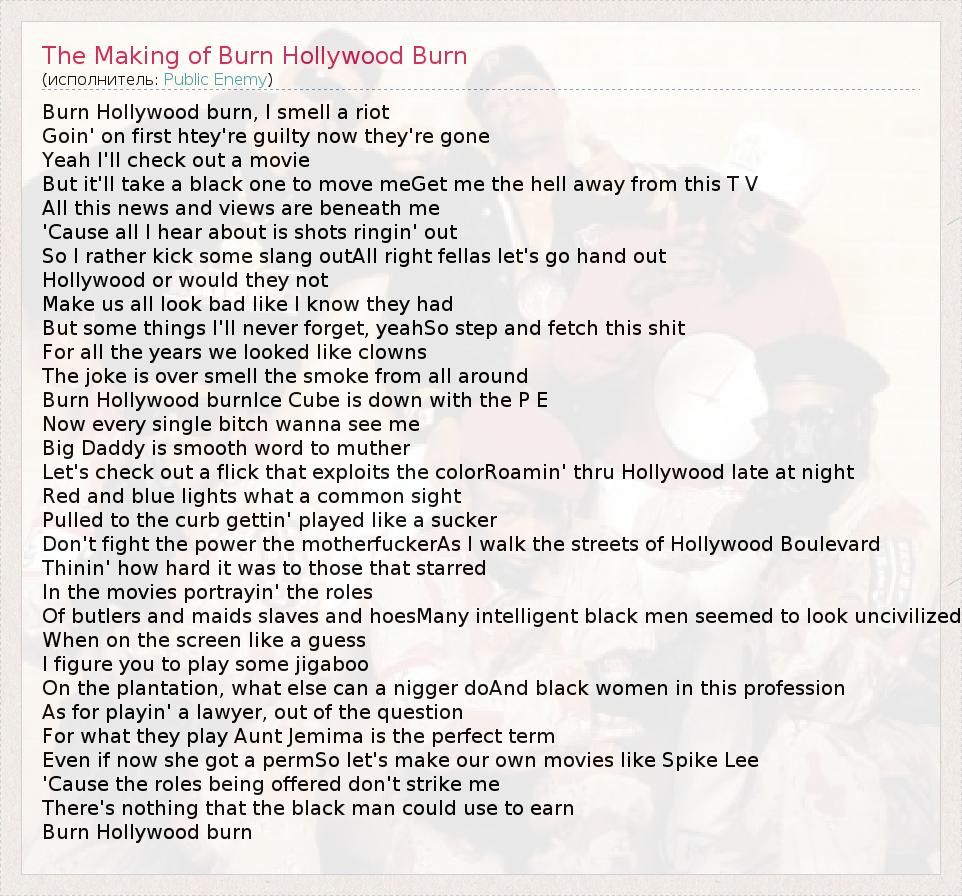 А как ты думаешь, о чем песня "The Making of Burn Hollywood Burn" ?