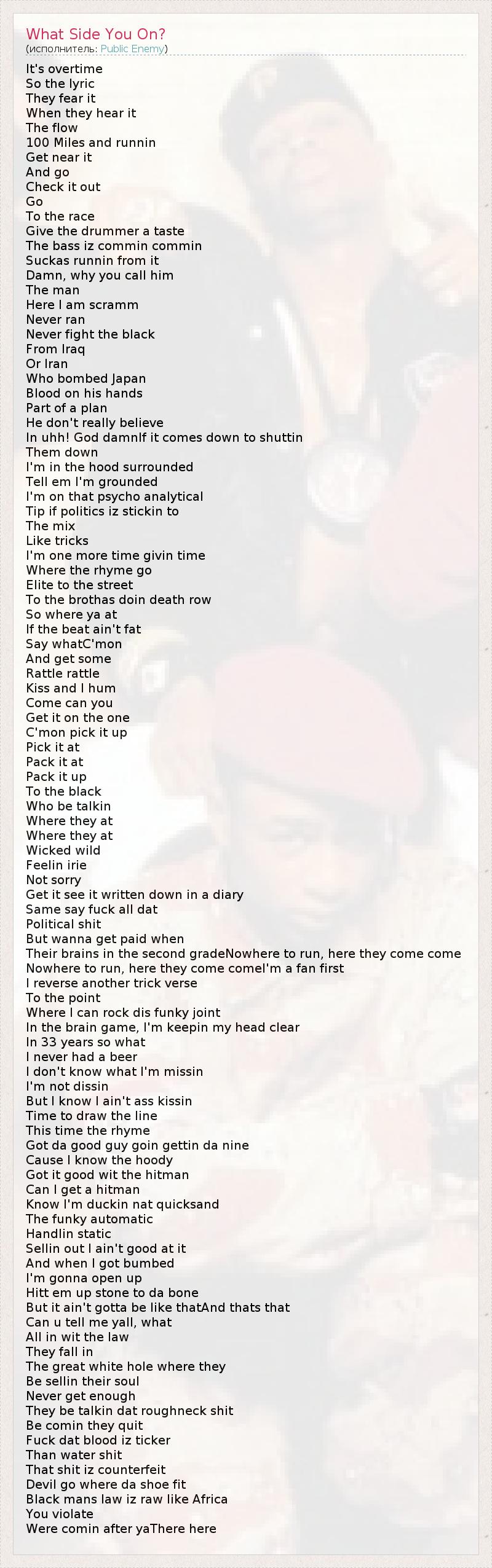 А как ты думаешь, о чем песня "What Side You On?" ?