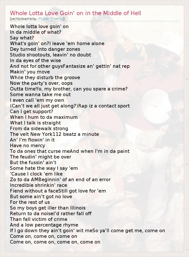 ГлавнаяИсполнителиPublic EnemyWhole Lotta Love Goin' on in the Middle of Hell