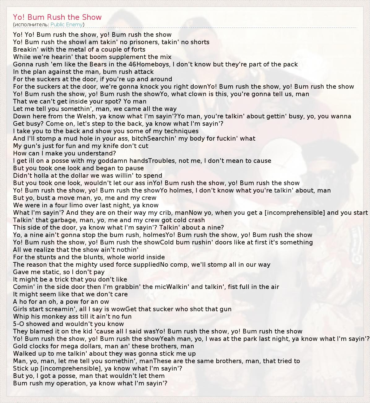 А как ты думаешь, о чем песня "Yo! Bum Rush the Show" ?