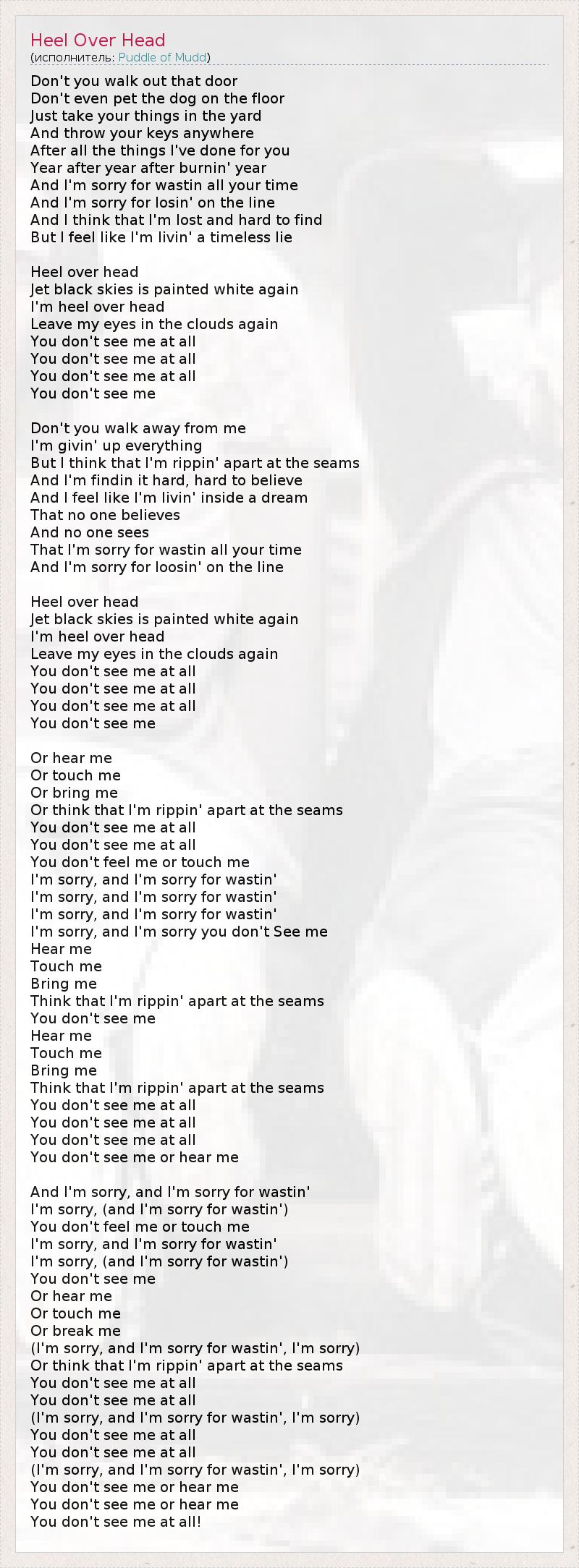 А как ты думаешь, о чем песня "Heel Over Head" ?