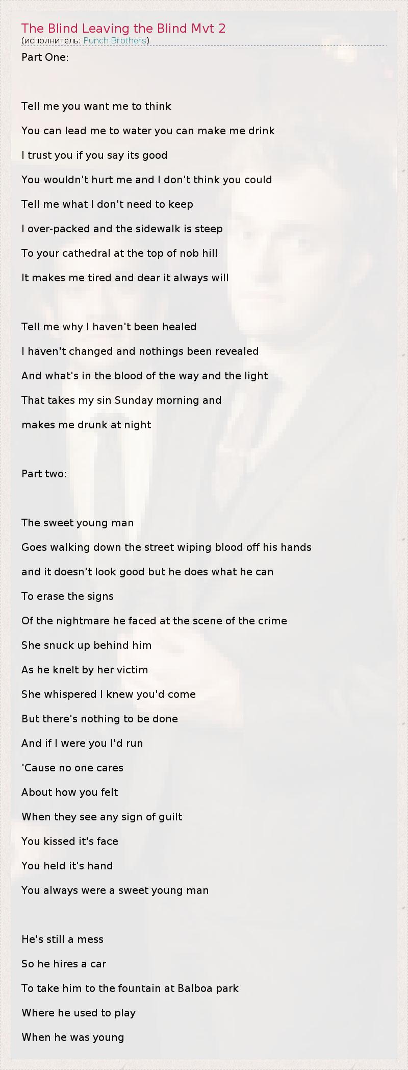 ГлавнаяИсполнителиPunch BrothersThe Blind Leaving the Blind Mvt 2