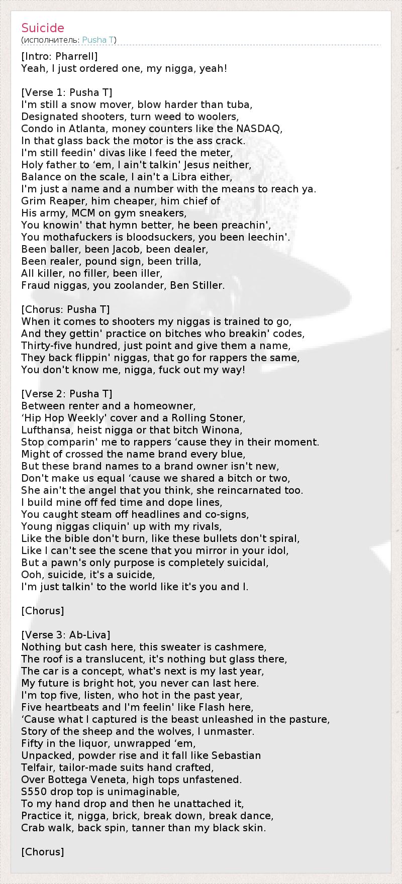 [Chorus: Pusha T]