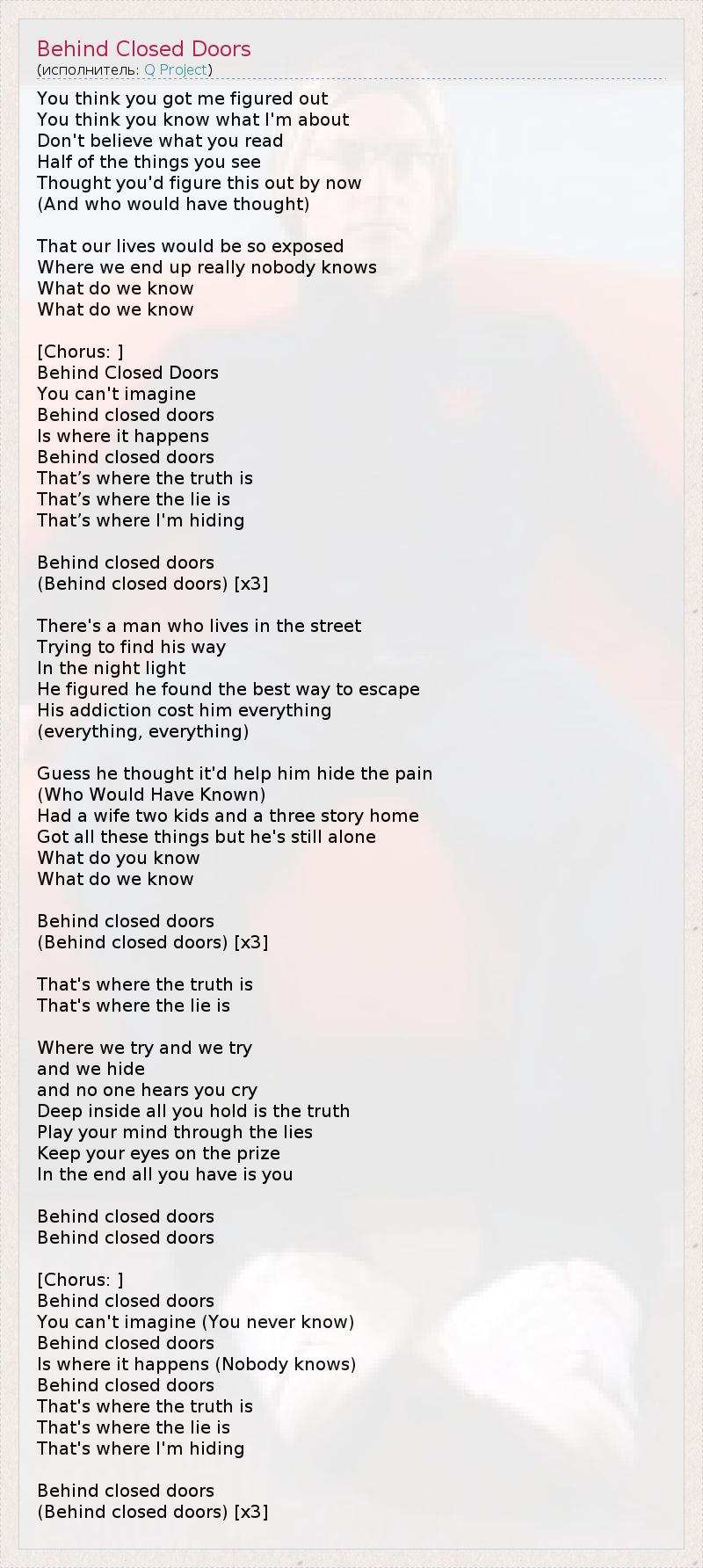 А как ты думаешь, о чем песня "Behind Closed Doors" ?